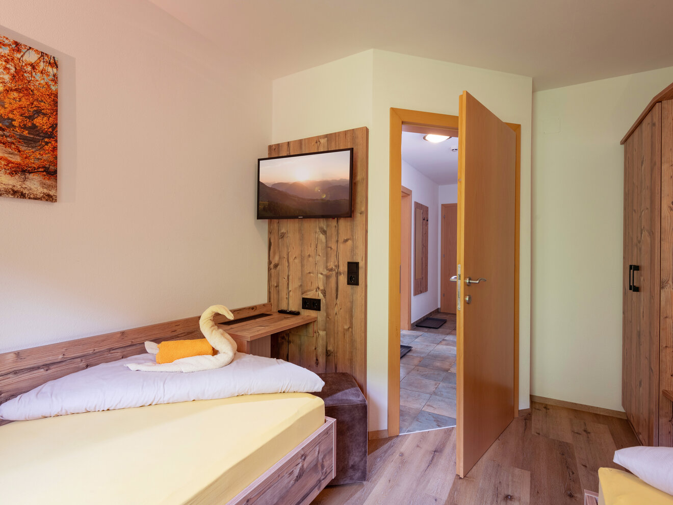 Für einen guten Start in den Tag erwartet Sie nach dem Aufwachen in unseren Komfortzimmern- und Appartements entweder ein reichhaltiges Frühstücksbuffet in unserem Gästehaus, oder nach Wunsch frische Brötchen in unseren Appartements im „Arbiskogelblick“.